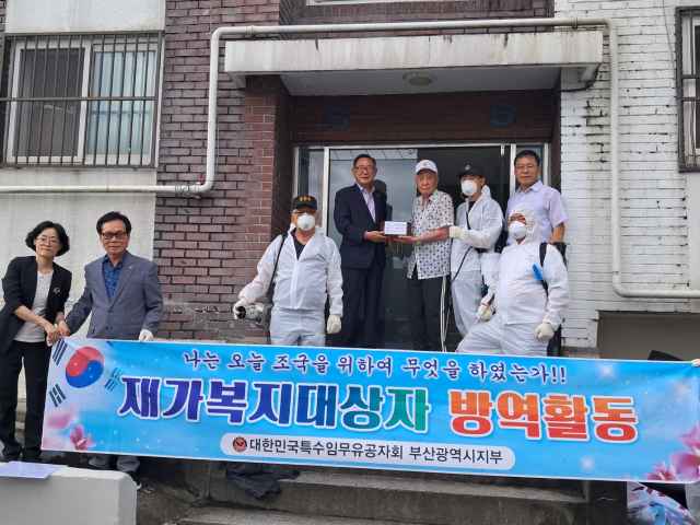 대한민국특수임무유공자회 부산시지부(지부장 김석종)는 지난 17일 동래구지회 회원들과 재가복지 대상 어르신들의 주택 방역 활동을 펼쳤다.