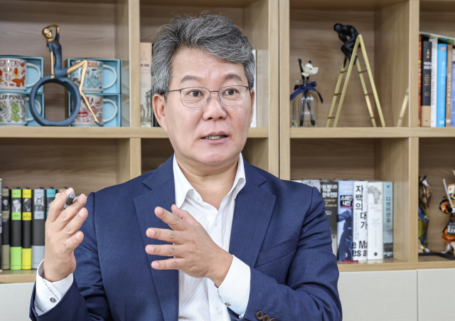변성완 민주당 부산시당위원장 후보는 18일 <부산일보>와 만나 2026년 지방선거 승리 전략을 설명하고 있다. 김종진 기자 kjj1761@