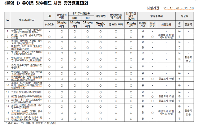 "일부 유아용 방수패드 pH 기준치 초과"…해당 업체에 시정 요청