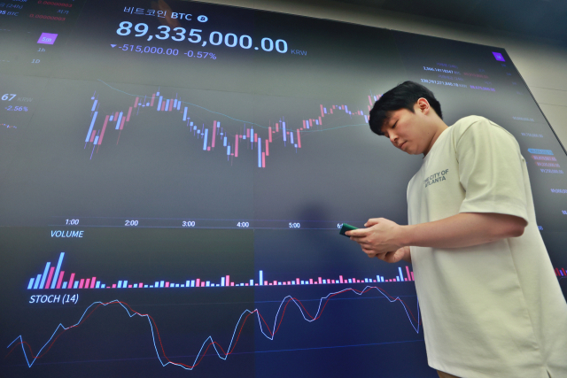 19일 가상자산이용자보호법이 시행됐다. 가상자산이용자보호법은 고객의 자산 보호가 골자다. 사진은 서울 강남구 업비트 라운지 가상자산 시세 전광판에 비트코인 가격이 표시된 모습. 연합뉴스