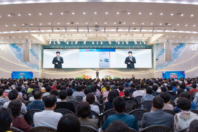 부산에서 열린 행복 세미나에 ‘까리하게’ 살고 싶은 부산시민 2000여 명이 모여 북새통을 이뤘다.