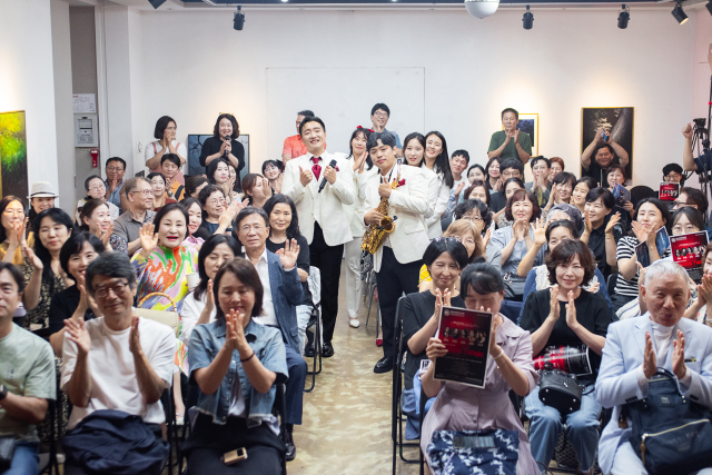 지난 19일 스페이스 움에서 공연을 마친 메츠클라 앙상블이 관객들과 기념 사진을 찍고 있다. 부산소공연장연합회 제공