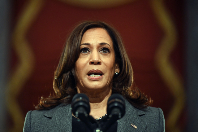 카멀라 해리스 미국 부통령이 지난 1월 6일(현지시간) 미 의회 폭동 사태 3주년을 맞이해 미국의 수도 워싱턴 D.C. 연방 의회 의사당에서 연설하고 있다. 21일 전격 사퇴를 발표한 조 바이든 대통령은 해리스 부통령을 당 대선 후보로 지지한다고 밝혔다. 연합뉴스