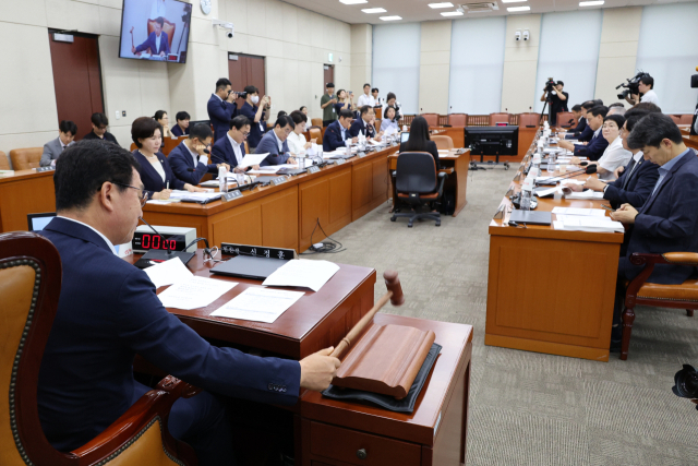 23일 서울 여의도 국회에서 열린 행정안전위원회 전체회의에서 신정훈 위원장과 위원들이 조지호 경찰청장 후보자에 대한 인사청문회 증인·참고인 출석요구의 건을 의결하고 있다. 연합뉴스