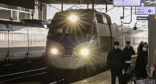 부산역 승강장으로 들어오고 있는 KTX. 김종진 기자 kjj1761@