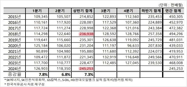 이는 석유협회 통계 집계 이후 역대 상반기 기준 최고 수출물량이다. 앞서 최대치를 달성했던 지난 2018년 상반기(2억 3700만 배럴) 이후 6년 만에 기록을 경신한 것이기도 하다.