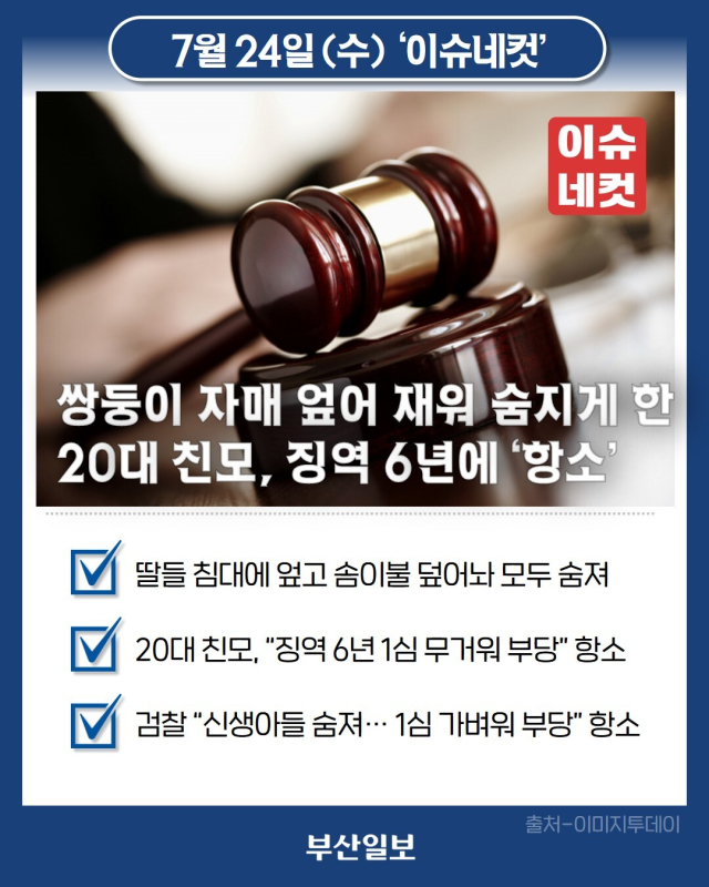 2. 쌍둥이 자매 엎어 재워 숨지게 한 20대 친모, 징역 6년에 항소
