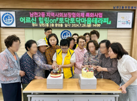 부산광역시 수영구 남천2동 행정복지센터(동장 유미란)는 동 지역사회보장협의체(위원장 배귀선)와 함께 2개월(6~7월)간 취약계층 홀로어르신들을 대상으로 우울 예방 프로그램 어르신 힐링 on '토닥토닥 마음테라피'사업을 추진했다고 밝혔다.