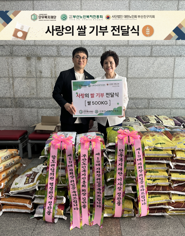 부산노인복지진흥회(회장 김만률)와 단우복지재단(이사장 정찬률)은 지난 29일 어려운 노인들과 이웃들을 돕기 위해 (사)대한노인회 부산진구지회(회장 안남연)에 쌀 500kg을 기부했다.