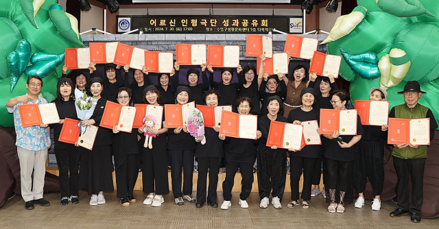 부산 수영구(구청장 강성태)는 지난달 30일 수영구 생활문화센터 강당에서 어르신들이 공연에 참여하는 인형극단 성과공유회 행사를 가졌다.