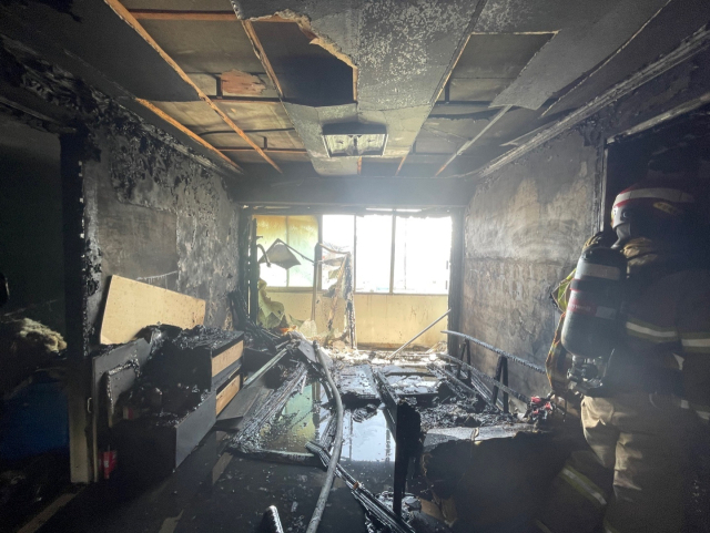 부산 해운대구 재송동 상가주택 2층에서 불이 났다. 사진은 주택 내부 모습. 부산소방재난본부 제공