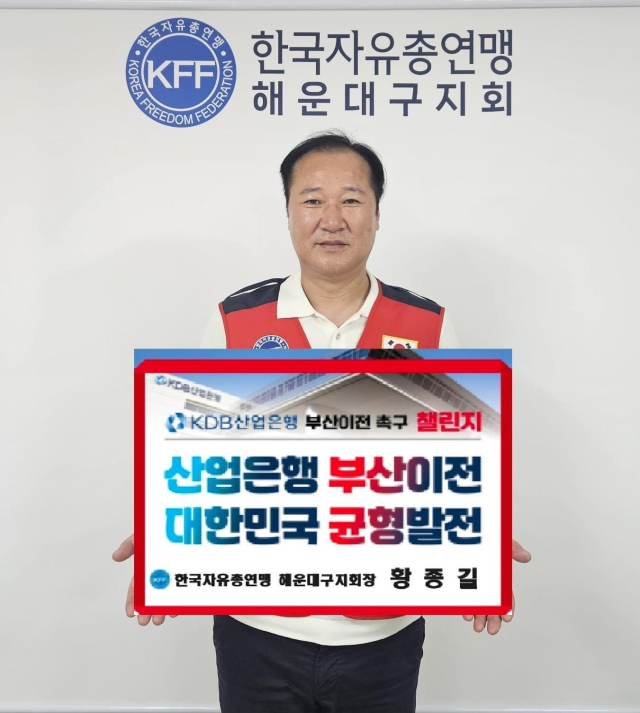 황종길 한국자유총연맹 해운대구지회 회장은 지난 6일 KDB산업은행 부산 이전 촉구 챌린지에 동참했다.