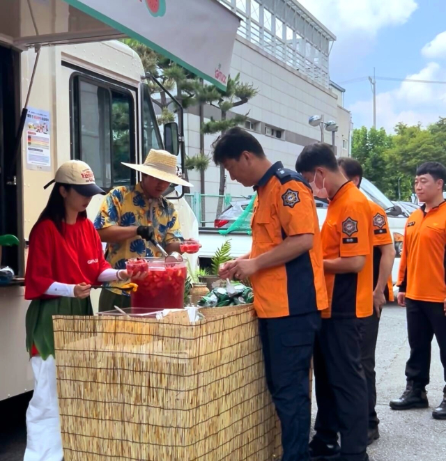 연일 폭염에도 시민의 안전을 위해 헌신하는 소방관들을 '수박트럭'이 위로했다.