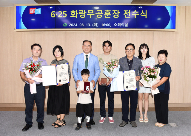 부산 사상구(구청장 조병길)는 지난 13일 6·25전쟁에 참전해 전사한 고 진우용 하사의 유족 진귀연 씨(자녀)와 고 노용출 병장의 유족 노창영 씨(자녀)에게 화랑무공훈장을 전수했다.