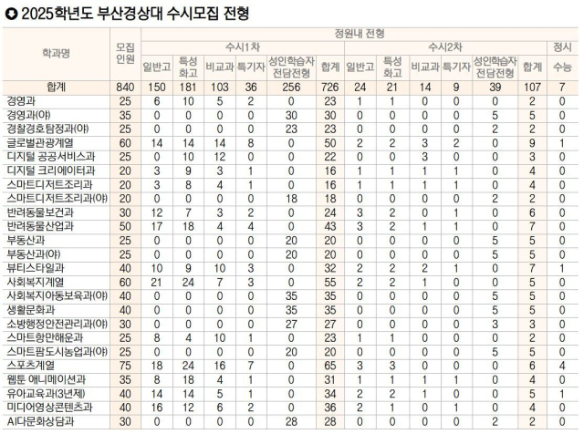 부산경상대는 지역 사회가 원하는 인재를 양성하기 위해 LIFE문화콘텐츠학부, LIFE평생교육학부, LIFE인문경상학부로 구성하고 △글로벌관광계열(관광영어, 관광일본어, 관광중국어전공) △사회복지계열(사회복지,아동보육전공) △스포츠계열(생활스포츠, 경찰경호전공) △스마트디저트조리과(야간) △스마트항만해운과 총 5개의 학과를 신설·운영할 예정이다.