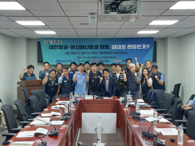 28일 국회 의원회관에서는 더불어민주당 김남근 의원, 조국혁신당 신장식 의원, 진보당 윤종오 의원, 사회민주당 한창민 의원 주최로 ‘대한항공-아시아나항공 합병, 이대로 괜찮은가’ 토론회가 열렸다. 이번 토론회는 민주노총과 공공운수노조도 공동주최로 참여했다.