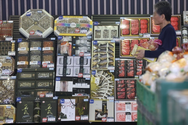 다음달 추석을 앞두고 일부 식품업체와 외식업체에서 가격을 인상하는 사례가 잇따르고 있다. 사진은 서울의 한 대형마트에 추석 선물세트 사전예약 견본이 진열돼 있는 모습.(사진은 기사와 관련없음) 연합뉴스