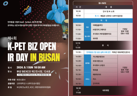 신라대 I-URP 사업단은 오는 9월 1일 부산 벡스코 제2전시장에서 ‘제4회 K-PET BIZ OPEN IR DAY IN BUSAN’ 행사를 주최사인 애견신문사와 공동주관으로 진행한다.
