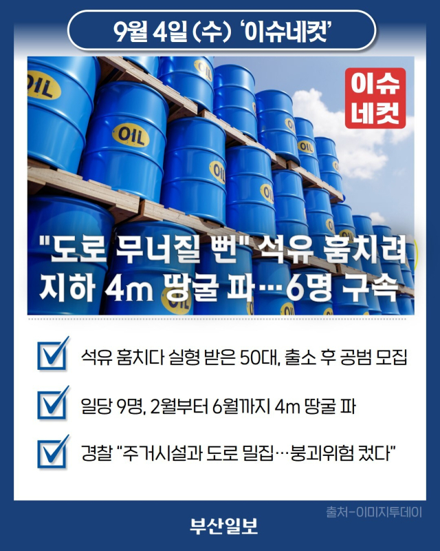 "도로 무너질 뻔" 석유 훔치려 지하 4m 땅굴 판 일당...6명 구속