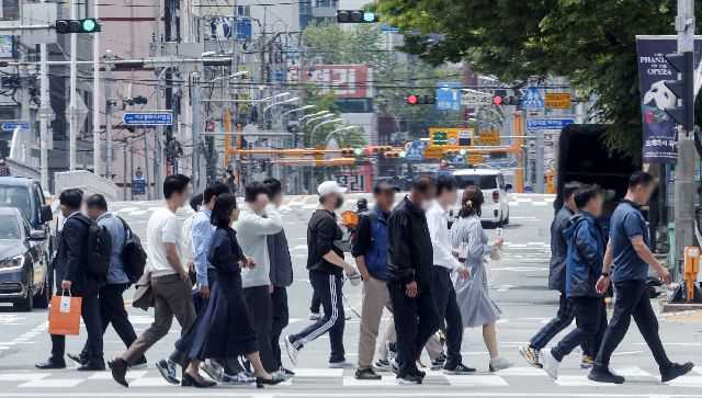 부산 남구 bifc 일대에 회사원들이 점심시간을 맞아 이야기를 나누고 있다. 부산일보DB