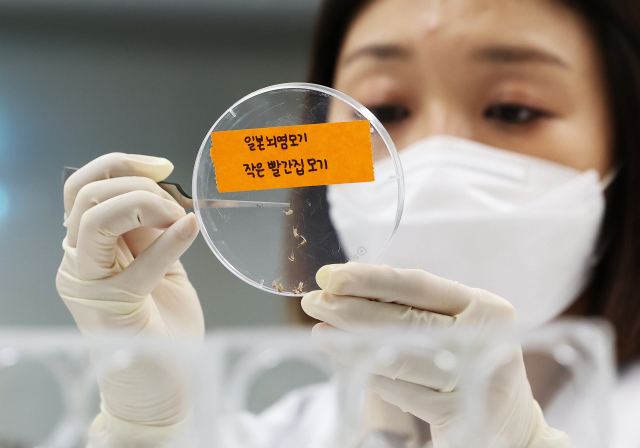 경기도보건환경연구원에서 연구원들이 모기 분류 작업을 하고 있다. 연합뉴스