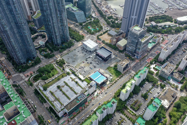부산 해운대구 우동 옛 부산 홈플러스 해운대점 부지와 그 일대 전경. 부산일보DB