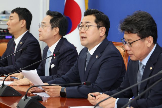더불어민주당 박찬대 원내대표가 12일 오전 서울 여의도 국회에서 열린 정책조정회의에서 발언하고 있다. 연합뉴스