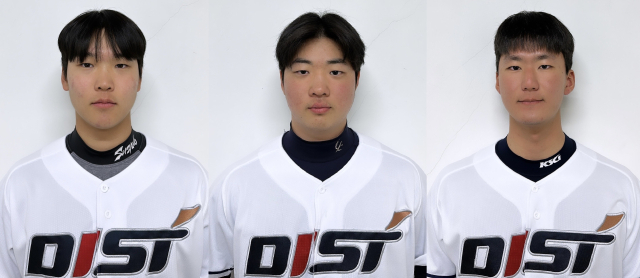KBO 리그 신인 드래프트에서 지명을 받은 동원과학기술대 홍준영, 윤상인, 이민재 선수. 동원과학기술대 제공
