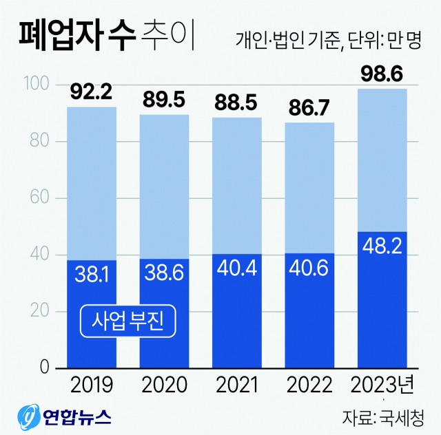 이처럼 자영업자 중에서도 ‘나 홀로 사장님’이라 불리는 1인 자영업자가 계속 줄어드는 것은 코로나19 사태 이후 매출·영업이익 등 경영 환경이 제대로 회복되지 못한 상황에서 고금리, 인건비 부담, 소비 부진 등이 이어지기 때문이다.