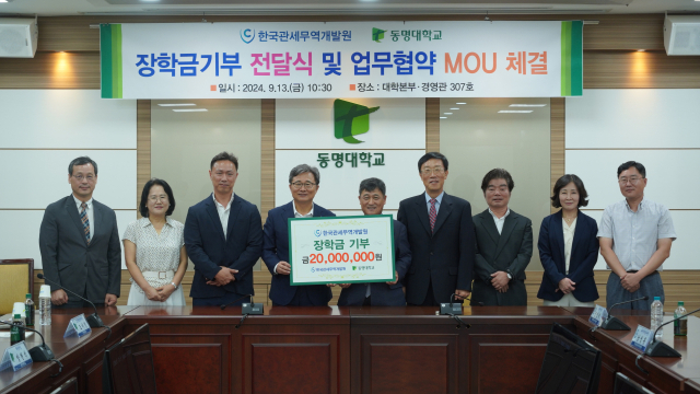 한국관세무역개발원(회장 이찬기)은 지난 13일 동명대학교(총장 전호환)에 장학금 2000만 원을 쾌척했다.
