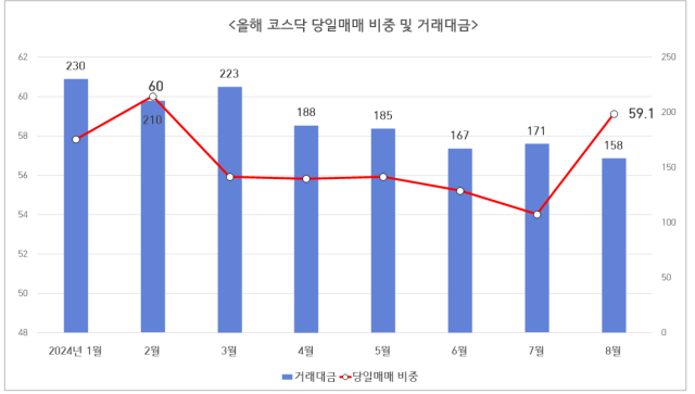 8월 코스닥 전체 거래대금 대비 데이트레이딩 비중 59.1%