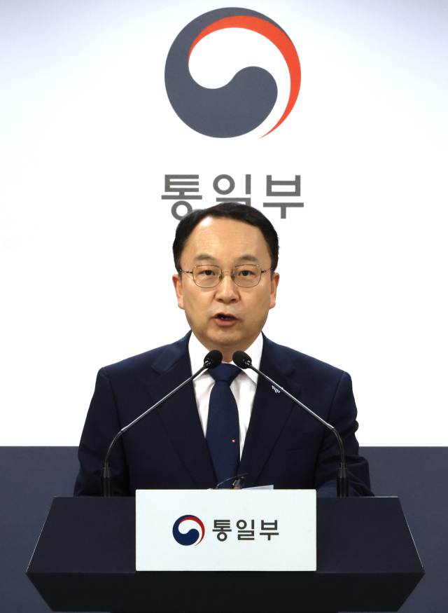 통일부 구병삼 대변인이 20일 서울 종로구 정부서울청사에서 열린 정례브리핑에서 김정욱 선교사 억류 4000일 계기 통일부 장관 성명을 발표하고 있다. 연합뉴스