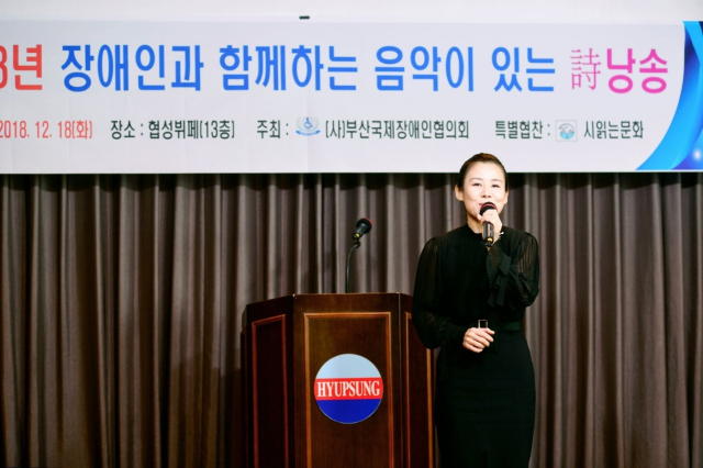 김윤아 (사)부산국제장애인협의회 시낭송 아카데미 원장이 진행하고 있는 시낭송 교실이 수강생 1만 명을 돌파했다.