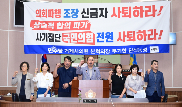 거제시의회는 후반기 원 구성을 둘러싼 여야 갈등으로 2달 넘게 공전했다. 지난 2일 여당의 일방적인 후반기 원 구성에 반발해 의회 본회의장을 점검 농성 중인 더불어민주당 의원들은 파행 장기화와 협상 파기에 대한 신금자 의장의 공개 사과와 양 의원의 조건 없는 사퇴를 요구하고 있다. 부산일보DB