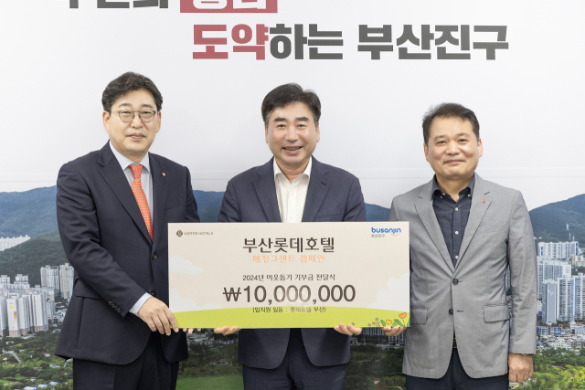 (주)부산롯데호텔(대표 홍성준)은 지난 25일 부산 부산진구청을 방문해 ‘이웃돕기’ 1000원의 행복 매칭 그랜트 기부금 1000만 원을 전달했다.