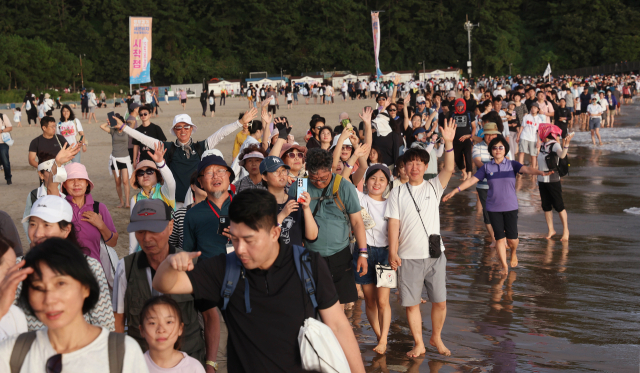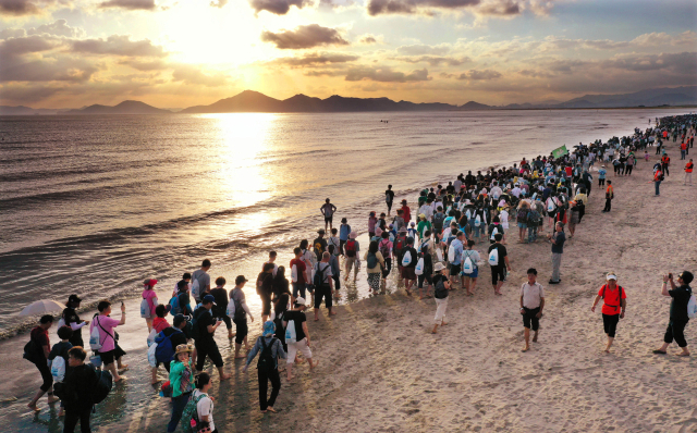 이날 챌린지는 역대 가장 많은 인원이 참가한 것으로 기록됐다. 사전에 참가 신청을 한 8000여 명과 가족 등 일행, 그리고 별도 신청 없이 즉석에서 동행한 시민 등 1만 명에 달하는 맨발인들이 노을이 가득한 해변을 수놓는 장관이 연출됐다.