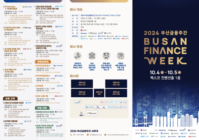 30일 부산시는 다음 달 4일부터 5일까지 부산 해운대구 벡스코 컨벤션홀에서 ‘2024 부산금융주간’을 개최한다고 밝혔다.