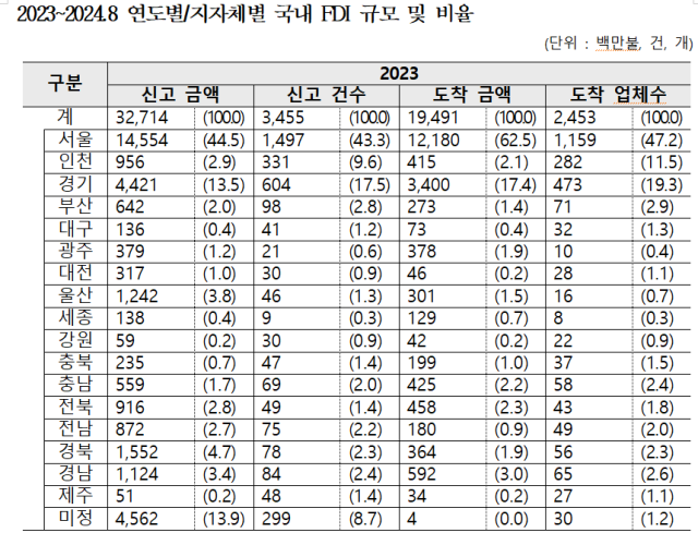 외국인직접투자, 80% 이상 수도권 편중…비수도권은 ‘찬밥’ 신세