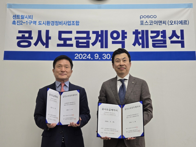 포스코이앤씨는 촉진2-1구역 조합과 재개발 공사 계약을 체결(사진)했다고 1일 밝혔다. 이에 따라 조합과 시공사는 내년 상반기까지 관리처분계획인가 절차를 마무리하고 2027년 초 착공할 예정이다.