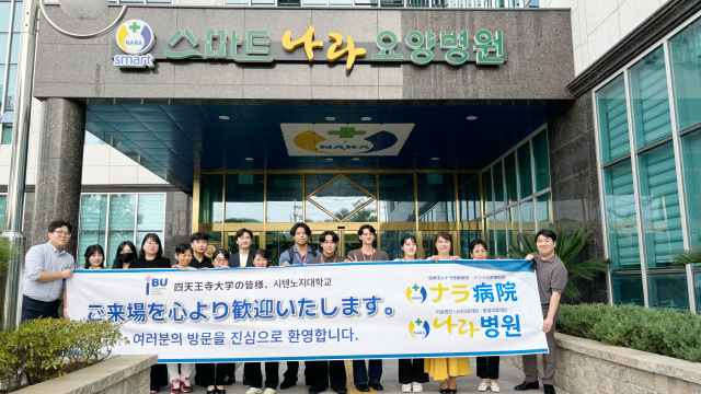 일본 시텐노지대학 간호학과, 사회복지학과 교원 등 총 11명으로 구성된 방문단은 스마트나라요양병원 재활치료센터와 병동 등을 견학하며 의료시설과 요양 등 우수한 의료 환경에 만족을 표했다.