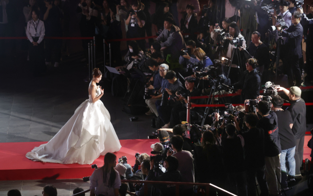 먼저 영화 ‘하울링’을 제작한 대만의 양링 감독이 개막식 레드카펫을 밟았다. 양링 감독은 발목까지 내려오는 하얀색 드레스를 입고 힘차게 레드카펫을 거닐었다.
