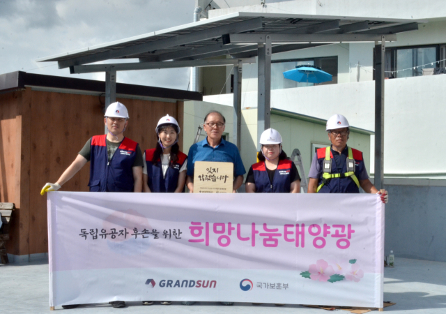 그랜드썬봉사단은 최근 ‘독립유공자후손 희망나눔태양광 10호’를 전남 여수에 거주 독립유공자 고 배세동(1897~1942) 선생의 김은평(외손자) 씨의 가정에 설치했다.