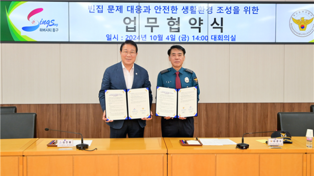 김진홍 동구청장은 “이번 동부경찰서와의 협약을 통해 오랫동안 주민들의 불안 요소였던 빈집 문제에 효과적으로 대응하고, 주민들이 안전하게 생활할 수 있는 환경을 조성함은 물론, 범죄 예방과 공공 안전을 위한 적극적인 대응이 가능하게 됐다”고 밝혔다.