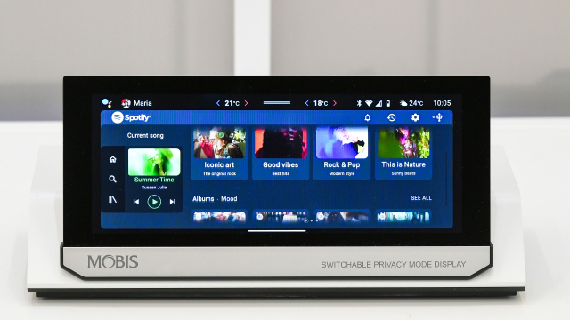 스위처블 디스플레이는 시야각 제어 기술을 적용한 차량 전면부 디스플레이로, 주행 중 운전자와 동승자의 디스플레이 시야각을 제한하거나 공유할 수 있다.