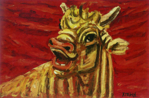<참 좋았더라>는 이중섭에게 통영 시절이 화양연화였다고 말한다. 그가 통영에서 그린 작품 중 하나인 ‘붉은 소’. 남해의봄날 제공