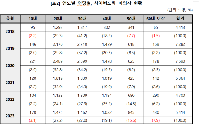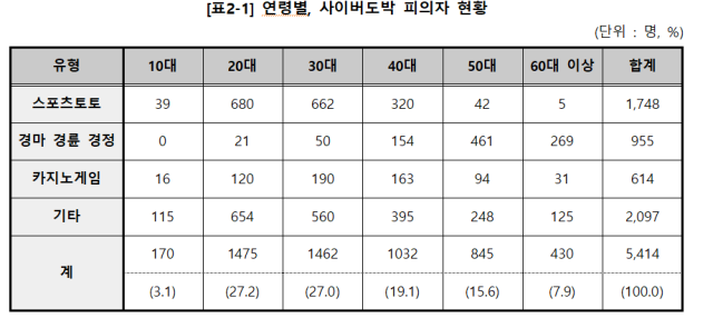 2030세대 사이버도박 피의자 수 54.2%…10대·50대 비중↑