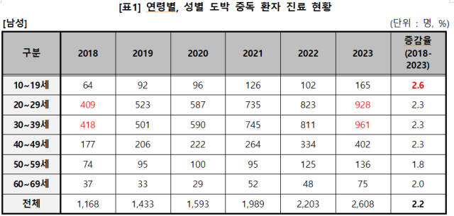 2030세대 청년층의 도박 중독 문제가 10대로까지 확대되고 있어 대책 마련이 시급한 것으로 지적됐다.