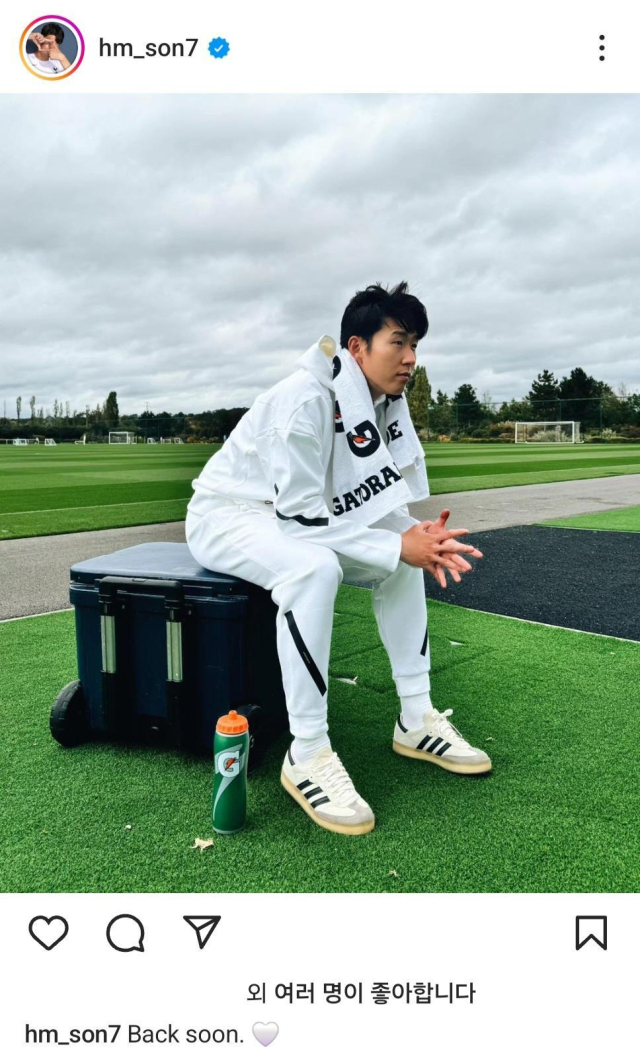 손흥민은 한국시간 13일 오후 자신의 소셜 미디어에 'Back soon'(곧 돌아간다)이라는 글을 올렸다.