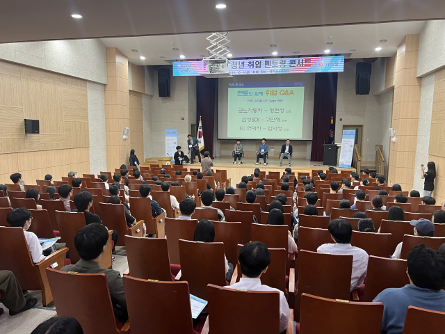 행사는 △기아자동차, 창신, 선보공업 멘토 특강 △르노자동차, 삼성SDI, 현대자동차 멘토와 취업토크쇼(Q&A), △소그룹 멘토링 순으로 진행됐다.