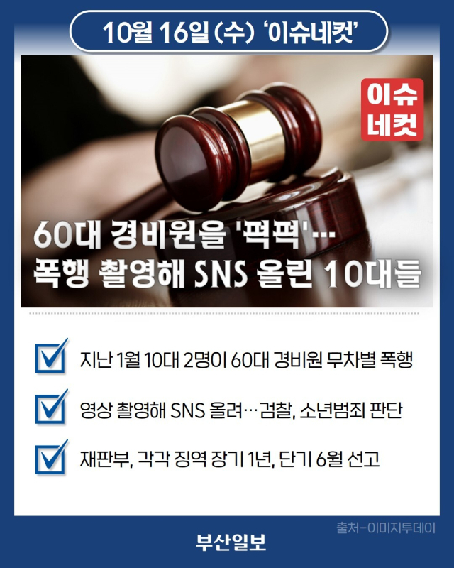 60대 경비원을 '퍽퍽'…폭행 촬영해 SNS 올린 10대들, 결국 징역형 [이슈네컷]